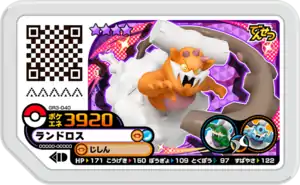 Landorus (Japanese: ランドロス Landlos) is a Grade 4 Pokémon Ga-Olé disk. It is part of the third Grand Rush set.