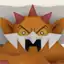 In its Therian Forme, Landorus is an orange, lean, quadrupedal Pokémon with feline features. The horns on its head are now thinner and arranged closer together in a downwards arch. While its hair remains the same; its mustache now takes on a more fanged maw-like appearance, curving around its head to behind its ears, which have now become smaller and rounder. Its eyes remain yellow, but with larger irises that still lack visible pupils. Its chest remains broad and unchanged, while its navel is bejeweled with a beige gem. Landorus's back and lower legs are striped with dark pink, and its biceps and triceps are adorned with dark pink upside-down, raindrop-like designs. It has four trailing cloud-covered paws, each with three sharp dark pink claws. Its tail remains largely unchanged, although it may be slightly smaller and shorter than before.