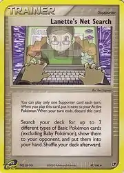 Lanette's Net Search (Japanese: マユミのネットサーチ Mayumi's Net Search) is a Supporter card. It is part of the EX Sandstorm expansion.