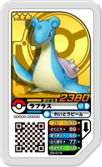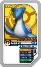 Lapras (Japanese: ラプラス Laplace) is a Grade 3 Pokémon Ga-Olé disk. It is part of the third set.