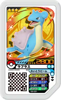 Lapras (Japanese: ラプラス Laplace) is a Grade 3 Pokémon Ga-Olé disk. It is part of the fifth Dash set.