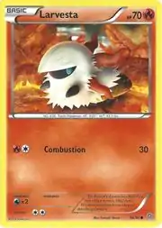 Larvesta (Japanese: メラルバ Merlarva) is a Fire-type Basic Pokémon card. It is part of the Ancient Origins expansion.