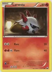 Larvesta (Japanese: メラルバ Merlarva) is a Fire-type Basic Pokémon card. It is part of the Dark Explorers expansion.