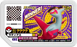 This disk was available as a prize for challenging Battle Leader Emako in the Trainer and Battle mode lineup from the first Ultra Legend set. Regardless of the outcome, players could dispense either this disk or a Latios disk following the battle. Disks dispensed if a player successfully defeated Battle Leader Emako had 'WINNER' on the illustration.