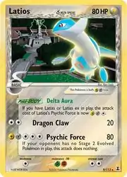 Latios δ (Japanese: ラティオス δ Latios δ) is a dual-type Lightning/Metal Basic Pokémon card. It is part of the EX Delta Species expansion.