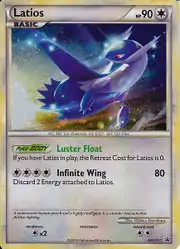 Latios (Japanese: ラティオス Latios) is a Colorless-type Basic Pokémon card. It is one of the HGSS Black Star Promos.