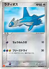 Super Psy's Japanese name is that of a Super powered form of Confusion, a move in the Pokémon games that Latios cannot learn. Freeze-Dry is a move later introduced in the Generation VI Pokémon games, but Latios cannot learn it. This card's e-Reader Pokédex entry comes from Pokémon Sapphire.