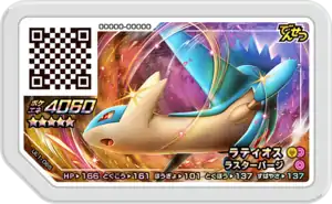 Latios (Japanese: ラティオス Latios) is a Grade 5 Pokémon Ga-Olé disk. It is part of the first Ultra Legend set.