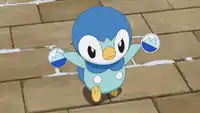 Ash and Goh took it to Sinnoh and returned it to Lauren. Still annoyed at Croagunk, Piplup entered the two in the Pokémon Iceberg Race to see who was the better swimmer. However, the race was interrupted by Team Rocket, who captured the other Pokémon participants, but Piplup continued racing against Croagunk, only stopping when Lauren's glasses fell into the ocean. Piplup helped save Lauren after she was knocked off the ship by cutting free a life raft for her to safely fall into, before retrieving the glasses. Piplup was later shocked when Lauren's glasses fell into the ocean, and a Psyduck retrieved them. Piplup's only known move is Peck. | ||