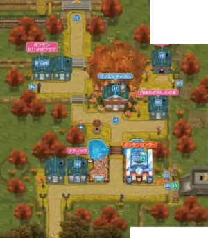 In the northeastern part of town is a café the player pays to enter. Daily, patrons inside will show off a Pokémon that is indexed by the Pokédex if previously unseen. More Pokémon may be seen depending on where the player chooses to sit, including Legendary Pokémon. If the player has seen every Pokémon available inside the Café, the waiter will comment and ask if they are sure about paying to come in. If the player decides not to enter, the waiter will tell the player that he will make the Café into something they will love by their next visit. Similar cafés can be found in Cyllage City and Anistar City.