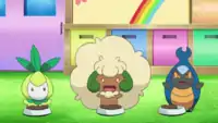 After she introduced them to the manager of the daycare, Ash, Iris, and Cilan decided to help Layla with her work. They learned that the Rufflet and Vullaby didn't get along. The Vullaby eventually escaped once again. Ash and Iris decided to maintain the daycare, while Cilan went with Layla to find Vullaby. When they eventually found it, they also ran into a group of wild Amoonguss. Vullaby was in danger of becoming poisoned, when Rufflet attacked the Amoonguss, followed by Cilan's Crustle, who blocked the path with Rock Slide.