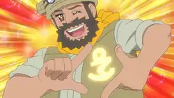 He was the leader of the ruins excavation team exploring the newly discovered Colossus Ruins at the Desert Resort. He joined Ash, Goh, Kira, and Shane Seeker in a Raid Battle against a giant Golurk, using his Litwick and Lampent. Eventually, the group defeated Golurk, and Goh subsequently caught it.