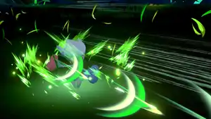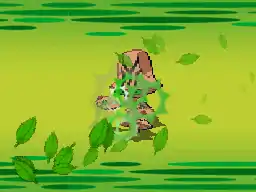 Grovyle jumps into the air and multiple green leaves start spinning around its body. Grovyle then fires the leaves at the opponent. | ||