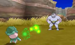Rowlet releases multiple glowing green leaves from its body. The leaves then spiral in a tornado-like fashion, before heading towards the opponent. Sometimes the leaves spiral around its body before they attack the opponents. | ||