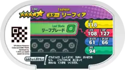 Leafeon (Japanese: リーフィア Leafia) is a Grade 5 Pokémon Mezastar tag. It is part of the third set.