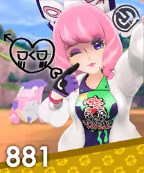 As a child, she was timid and a bit of a crybaby. However, she became more cheerful as she played with the Pokémon she received from her brother, and her talents as a Trainer also grew greatly. She joined the Gym Challenge because she wishes to breathe life back into her dilapidated hometown, but she says she has been somewhat distracted by the boutiques throughout Galar. Though many in Spikemuth see her as a local celebrity, she herself has no interest in pursuing fame. However, she says she does appreciate the support of Team Yell, her personal cheering squad. | ![]() Location: Spikemuth |