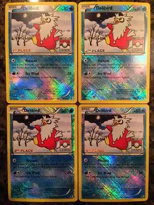 Cards given as reward are typically based on regular version of the same cards released in the expansion paired with each Pokémon League seasons. Each card has a '"1st Place'", '"2nd Place'", '"3rd Place'", and '"4th Place"' stamps and a different Holofoil pattern according to which expansion it belongs to.