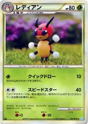 Ledian (Japanese: レディアン Redian) is a Grass-type Stage 1 Pokémon card. It is part of the HeartGold & SoulSilver expansion.