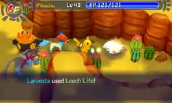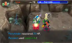 In Red Rescue Team and Blue Rescue Team, and Explorers of Time, Darkness and Sky, Leech Life is a move with 4 base power, 90% accuracy, and 19 PP. The user attacks enemy in the front, and up to 50% of the damage dealt to the target is restored to the user as HP, including excess damage. This move is affected by Muzzled status condition.