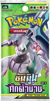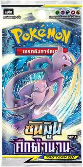 Legendary Clash was released on April 10, 2020 in Taiwan and Hong Kong, followed by a release in Thailand on May 24, 2020. It is an amalgamation of the final Japanese Sun & Moon Era expansions Miracle Twin and Alter Genesis, as well as the Sky Legend, Remix Bout, and Dream League subsets. It is split into two sets, Set A and Set B, each of which focuses on specific types. Set A focuses on Grass, Psychic, Darkness, Fairy, and Dragon-type Pokémon, while Set B focuses on Fire, Water, Lightning, Fighting, Metal, and Dragon-type Pokémon. Both sets also feature a number of Tag Team Pokémon-GX; Mewtwo & Mew-GX and Arceus & Dialga & Palkia-GX are featured on the booster pack art for Set A and Set B, respectively, and were specially illustrated by Mitsuhiro Arita. Each pack contains six cards.