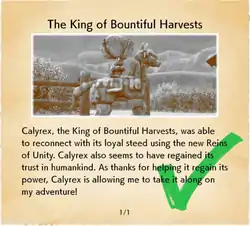 Calyrex, the King of Bountiful Harvests, was able to reconnect with its loyal steed using the new Reins of Unity. Calyrex also seems to have regained its trust in humankind. As thanks for helping it regain its power, Calyrex is allowing me to take it along on my adventure!