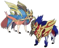 Zacian and Zamazenta are Legendary Pokémon introduced in Pokémon Sword and Shield. In ages past, these two Pokémon worked together to protect Galar from a calamity known as the Darkest Day, defeating Eternatus before retreating to the Slumbering Weald to slumber. The two Pokémon were nearly forgotten by history until the truth behind the legend was discovered by Sonia, with the help of Victor/Gloria and their rival, Hop. The truth of the legend was eventually published in a book, and became a point of contention from two brothers, Sordward and Shielbert, who claim to be descendants for the old kings.