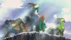 They made their anime debut together, in the fifteenth Pokémon film Kyurem VS. The Sword of Justice, where Keldeo was responsible for the freezing of the other three during a battle against Kyurem, and sought help from Ash and his friends. In the movie, Cobalion acts as the leader of the Swords of Justice, protecting Pokémon and humans alike through the world.