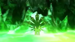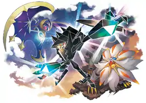 Necrozma was believed to have come from an alternate dimension long ago. It has a major role in Pokémon Ultra Sun and Ultra Moon, where as the "Blinding One", it once shared light across Alola and Ultra Space before an unknown injury caused Necrozma to lose its true form. This resulted in Necrozma becoming extremely vicious and constantly in pain, which made it steal light from other worlds or the Solgaleo and Lunala in order to sustain itself and regain the form it once had.