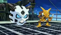 | Alakazam is able to Mega Evolve into Mega Alakazam. It battled against Volcanion and was later seen using Psychic on the rest of the army of Mega Pokémon. It was later shown being hit by Clemont's Chespin's Pin Missile. It was later freed from Levi's control when Alva's Mega Wave Crystal was destroyed and escaped. | ||