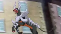 | Houndoom is able to Mega Evolve into Mega Houndoom. It was shown being attacked with Ash's Pikachu's Thunderbolt, Volcanion's Hydro Pump, and Clemont's Chespin's Pin Missile. It was later freed from Levi and Cherie's control when Alva's Mega Wave Crystal was destroyed and escaped.