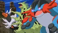 | Swampert is able to Mega Evolve into Mega Swampert. It tried to attack Ash's Talonflame and Pikachu and was also seen being hit by Clemont's Chespin's Pin Missile. It was later freed from Levi and Cherie's control when Alva's Mega Wave Crystal was destroyed and escaped.