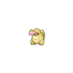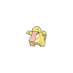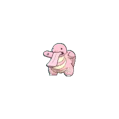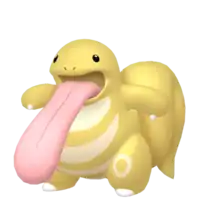 At over 6 feet 6 inches (2 meters), Lickitung's tongue is twice as long as its body. Sticky, smelly saliva coats its tongue, which causes a tingling sensation when touched and can cause rashes if not cleaned off. It is used for capturing prey, exploring its environment, and cleaning. However, it is questionable if its saliva is clean in the first place as whatever it cleans has a lingering smell. Lickitung remembers things by their texture and taste, although it apparently dislikes sour things. The tongue is both dexterous and powerful enough to lift people, as seen in the anime. Lickitung preys on Bug-type Pokémon. It prefers swallowing its prey whole after paralyzing them with its tongue. Lickitung can be found in grassy plains and meadows.