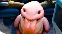 Lickitung may be based on lungless salamanders, some of which have projectile tongues and may secrete a sticky, irritating substance. Lickitung could also draw inspiration from the Iguanodon genus of dinosaurs, as it shares its characteristic "thumbs". Additionally, it may draw inspiration from the Akaname, a mythical yōkai with a single claw on each foot and a gigantic tongue. Akaname are known to lick filth out of bathhouses, similar to Lickitung's habit of licking dirty things clean.