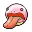 Lickitung is a bipedal Pokémon with a round body and a thick, powerful tail. It has soft, pink skin with curved yellow lines on its belly and a yellow ring marking on each knee. It has a thumb-like claw on each hand and a single large nail on each foot. There is a yellow spot on its palms and the soles of its feet. It has beady eyes and a long, prehensile tongue. The tongue is likely connected to its tail, which twitches when the tongue is pulled.