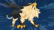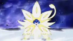 In Filling the Light with Darkness!, Solgaleo and Lunala were playing in an Ultra Wormhole when they were attacked by a Necrozma. They fled as Necrozma pursued them through the Ultra Wormhole. It eventually wound up being injured by one of Necrozma's attacks and was left behind.
