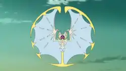 In Full Moon and Many Arms!, Necrozma continued to chase Lunala around Melemele Island. Despite the best efforts of Tapu Koko, Necrozma was able to merge with Lunala, becoming Dawn Wings Necrozma. Lunala was later freed when Solgaleo appeared and forced Necrozma to separate from it. Lunala was subsequently taken to the Ultra Guardians base below the Pokémon School to be healed. Later, Lunala was able to recover itself by using the energy emitted from Ash, Kiawe, Lana, and Gladion's Z-Rings.