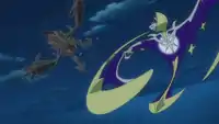 In Full Moon and Many Arms!, despite the best efforts of Tapu Koko and the Ultra Guardians, Necrozma was able to merge with Lunala and form Dawn Wings Necrozma. In this state, a special unit from Team Rocket attempted to catch it, but it was able to break through the net easily. Solgaleo then appeared and attacked Necrozma with Sunsteel Strike, forcing it to separate from Lunala. However, Necrozma then merged with Solgaleo to form Dusk Mane Necrozma, and left through another Ultra Wormhole.