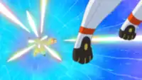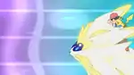 In Securing the Future!, Necrozma absorbed the Z-Moves, but that wasn't enough to get it to let go of Solgaleo. However, with the combined Z-Power of the Ultra Guardians and their allies back in Alola, Necrozma was filled with enough light to release Solgaleo from its grasp. Despite their success, Necrozma was only angered by the attempt and attacked everyone so it could absorb Solgaleo once again. With the Z-Crystals they received from Solgaleo and Lunala, Ash and Gladion performed Searing Sunraze Smash and Menacing Moonraze Maelstrom, respectively. The two Z-Moves fully restored Necrozma back to its original self, Ultra Necrozma. Necrozma then used its power to restore Poipole's home world back to its previous state. Afterwards, Necrozma appeared in Alola before dissipating into light.