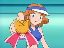 Lilian Meridian (Japanese: リリアン Lilian) is a recurring character who appeared in the Pokémon anime. She is the master of ceremonies of Kanto Pokémon Contests and the younger sister of Vivian Meridian. She first appeared in The Saffron Con.