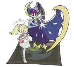 Artwork of Lillie playing the Moon Flute for Nebby as Lunala | ||