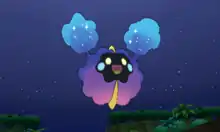 Nebby (Japanese: ほしぐもちゃん Hoshigumo-chan) is a Pokémon Lillie took care of after rescuing it from the Aether Foundation. It was first seen escaping from Lillie's bag and running off to Mahalo Trail, where it was attacked by wild Spearow. When Moon stepped in to save it, Nebby broke the bridge they were standing on, causing both to fall towards the water until they were saved by Tapu Koko. In A Raid and Po Town, it was revealed to have evolved into a Cosmoem and later evolves into a Lunala. | ||