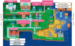 | Pokémon Association HQ | Lilycove Department Store | Lilycove Museum | Cove Lily Motel |