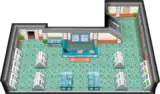 The receptionist on the left welcomes visitors, and the one on the right runs the Pokémon Lottery Corner, with the winning number changing daily. Prizes are awarded for winning numbers, which must match any of the player's Pokémon's ID numbers from the last digit to the first one.