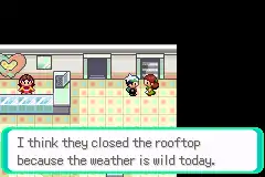 In Pokémon Emerald, during Groudon's and Kyogre's appearance in Sootopolis City, the rooftop is closed due to the weather.