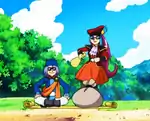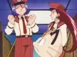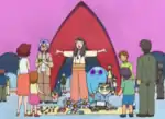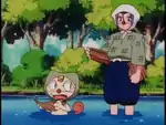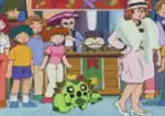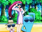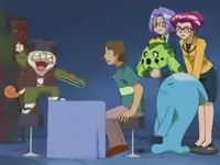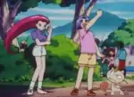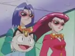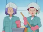 The Totodile Duel | Jessie and James posed as auxiliary ladies from the Pokémon Battler's Association, though Wobbuffet's unannounced appearance helped Ash and his friends see through the disguises. |