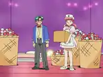 The Ole' Berate and Switch! | Butch and Cassidy hosted a fake battle tournament in Sable City. Cassidy was dressed as Nurse Joy, with a face mask, pink wig and nurses costume while Butch posed as an attendant. |