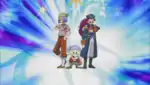 After that, Jessie disguised herself as a woman selling tickets to a ship to go back to Kanto, James posed as the ship captain, and Meowth was disguised as a sailor. The disguises fooled Ash and his friends and led them to board Team Rocket's vessel. The scheme was ruined after Ash's Oshawott overheard Team Rocket's private conversation. | |