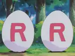 Who Gets to Keep Togepi? | Jessie and James posed as female Egg-sellers with old-fashioned dresses, bonnets, and baskets full of fake Pokémon Eggs in an attempt to steal the Togepi Egg. |