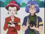 The Ultimate Test | Jessie and James entered the Pokémon League test in disguise. Jessie wore a gray woman's business outfit, black skirt, glasses with her hair in braids and black Mary Jane shoes, while James also had glasses, along with a blue suit. This was also one of the few times where one of the duo didn't recognize the other in disguise, James didn't recognize Jessie until after she took off her glasses. |