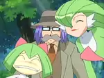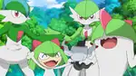 Making Friends and Influencing Villains! | Team Rocket dressed up as members of the Ralts evolutionary line again. Jessie's Wobbuffet dressed up as Ralts, Meowth as Kirlia, James as Gallade and Jessie as Gardevoir. Meowth and Jessie were both disguised as the same Pokémon as the previous time. Jessie also wore a Phantump costume. |